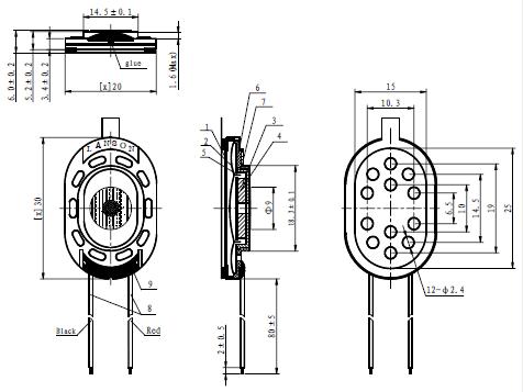輸出聲壓水平:91±3db spl at 0.7、0.81.0、1.2kHZ in average (0db spl=20μpa)
